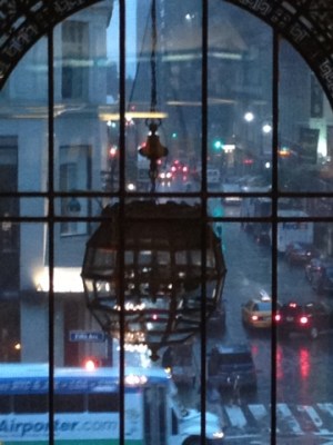 This particular sector was dedicated to chandeliers and other lighting instruments, and I was drawn to a rather hideous looking hanging orb like bulb thingy. I guess I consented because I could peer outside for a quick survey of the streets for our dashing damsel.